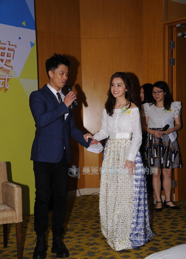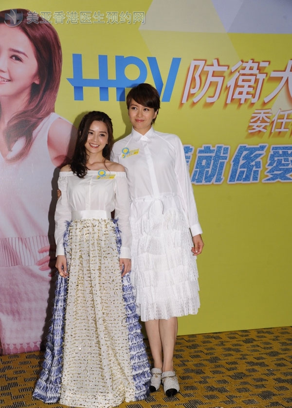 阿Sa露肩装以长裙遮掩左脚伤势,和梁咏琪出席HPV防卫教育现场